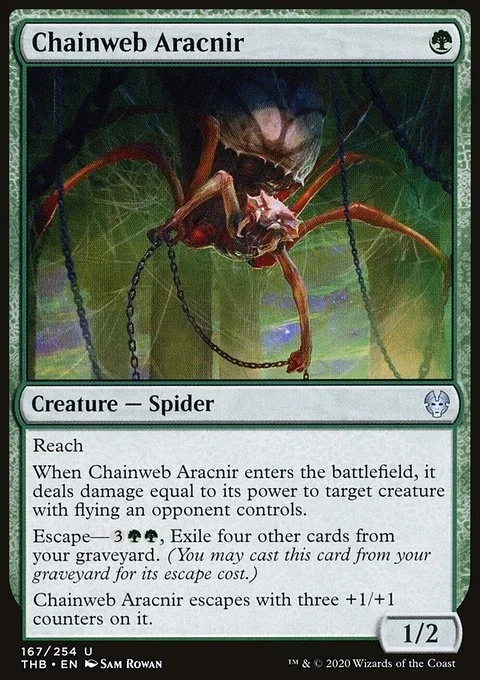 Chainweb Aracnir escapes with three +1/+1 counters on it.