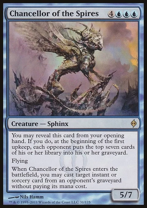 When Chancellor of the Spires enters the battlefield, you may cast target instant or sorcery card from an opponent's graveyard without paying its mana cost.