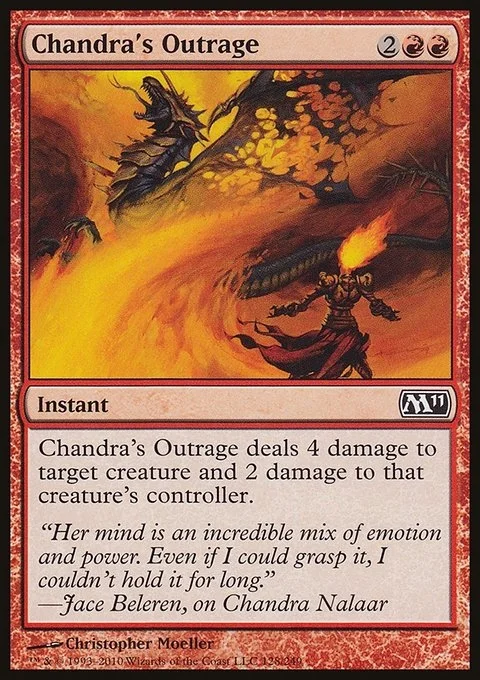 Chandra's Outrage deals 4 damage to target creature and 2 damage to that creature's controller.