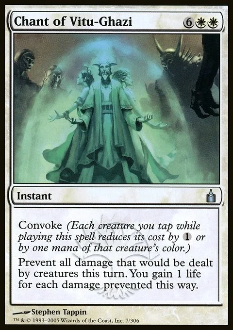 Convoke (Your creatures can help cast this spell. Each creature you tap while casting this spell pays for {1} or one mana of that creature's color.) Prevent all damage that would be dealt by creatures this turn. You gain life equal to the damage prevented this way.