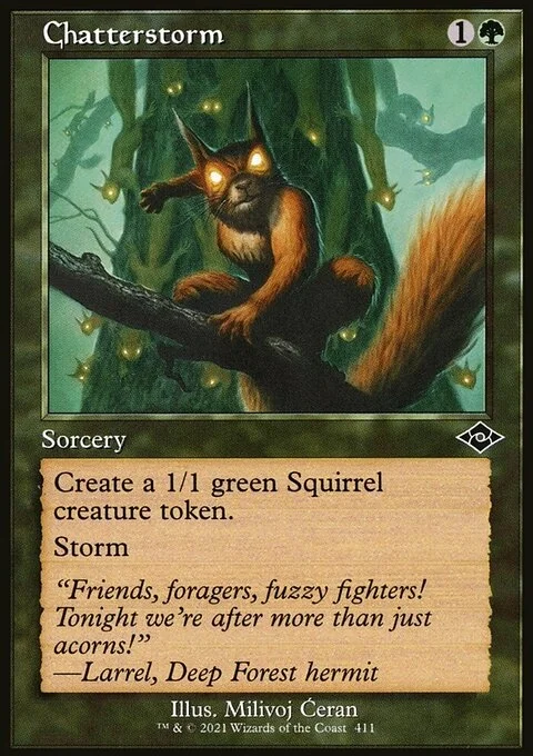 Create a 1/1 green Squirrel creature token. Storm (When you cast this spell, copy it for each spell cast before it this turn.)