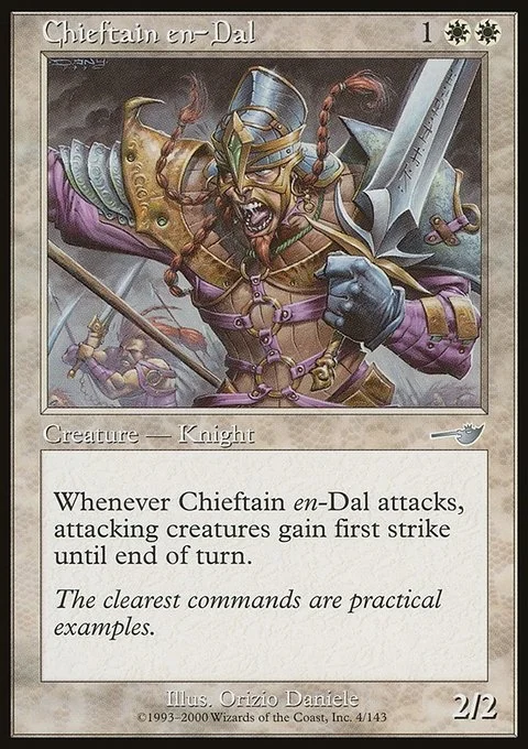 Whenever Chieftain en-Dal attacks, attacking creatures gain first strike until end of turn.