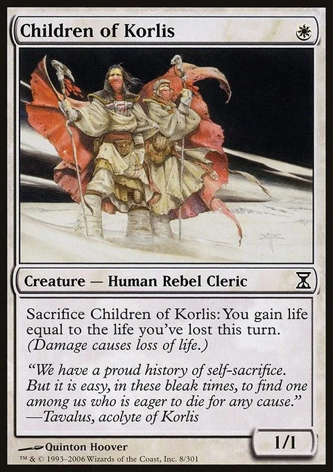 Sacrifice Children of Korlis: You gain life equal to the life you've lost this turn. (Damage causes loss of life.)