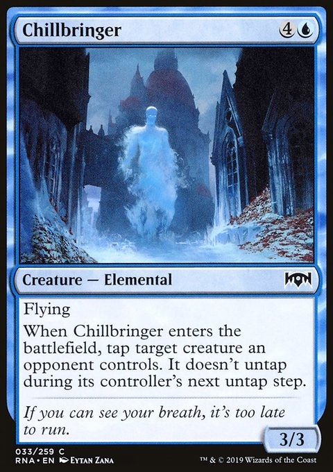 Flying When this creature enters, tap target creature an opponent controls. It doesn't untap during its controller's next untap step.