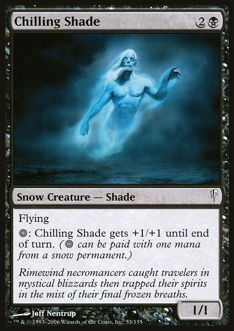 Flying {S}: Chilling Shade gets +1/+1 until end of turn. ({S} can be paid with one mana from a snow source.)