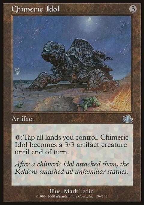 {0}: Tap all lands you control. Chimeric Idol becomes a 3/3 Turtle artifact creature until end of turn.