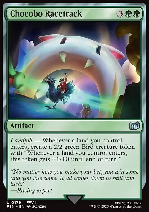 Landfall — Whenever a land you control enters, create a 2/2 green Bird creature token with "Whenever a land you control enters, this token gets +1/+0 until end of turn."