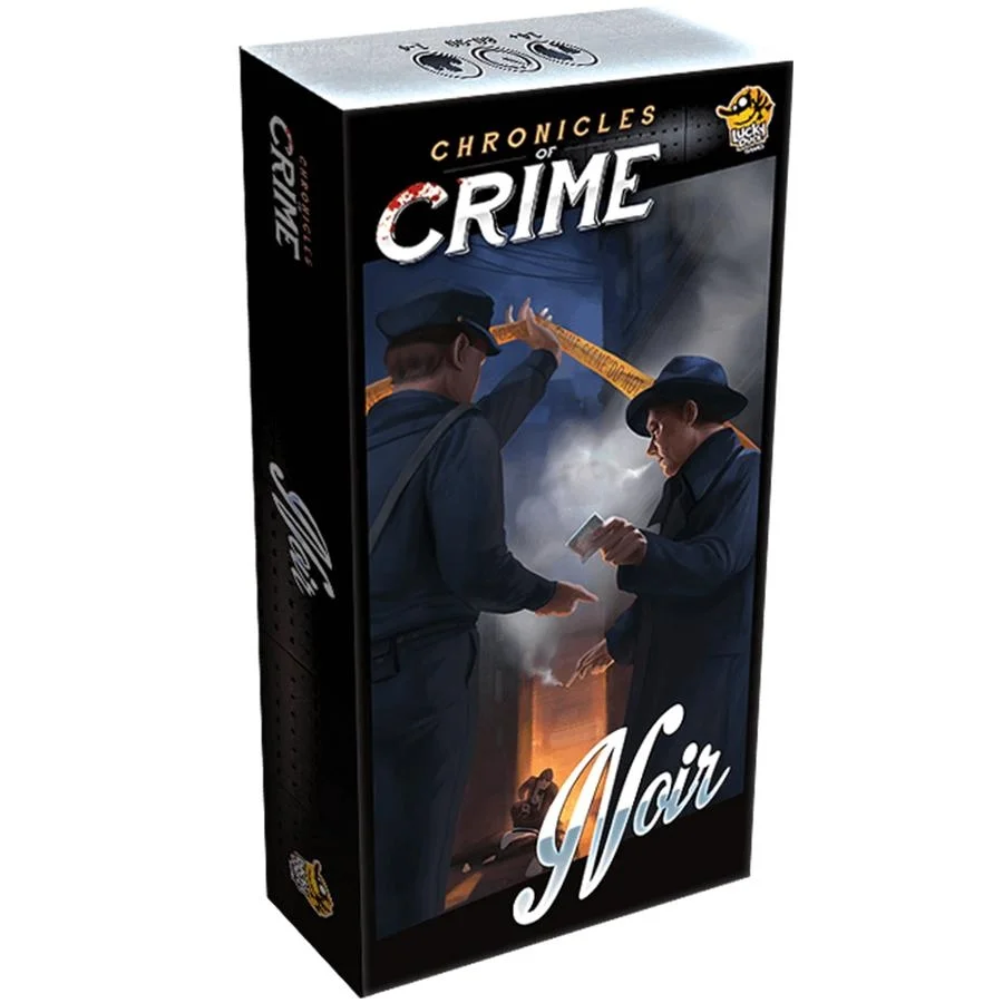 Noir is an expansion authored by Stephane Anquetil, a very talented writer with credentials including Sherlock Holmes Consulting Detective scenarios as well as Escape Books and Box (404 éditions). In Noir, the whole group is collectively representing one private detective with unconventional methods. Instead of Forensic Contacts, players have 4 action cards they can use at any point and any moment: Spy Break-In Bribe Intimidate You won't be able to intimidate everyone without repercussions. Also, your money is in a shortage, so you can't bribe everyone you meet. Noir really brings another side to crime busting!