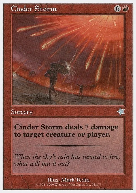Cinder Storm deals 7 damage to target creature or player.