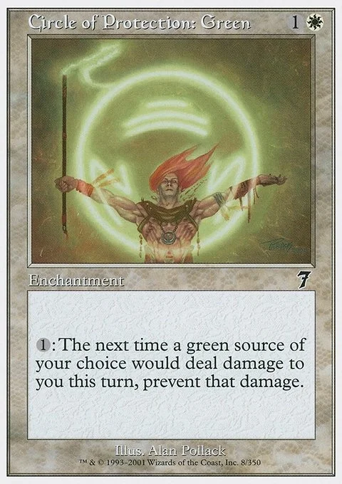 {1}: The next time a green source of your choice would deal damage to you this turn, prevent that damage.