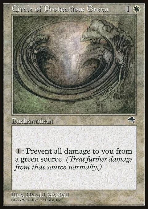 {1}: The next time a green source of your choice would deal damage to you this turn, prevent that damage.