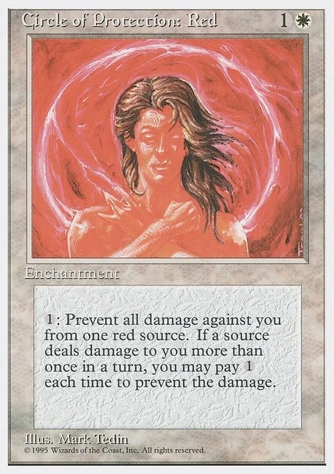 {1}: The next time a red source of your choice would deal damage to you this turn, prevent that damage.