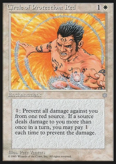 {1}: The next time a red source of your choice would deal damage to you this turn, prevent that damage.