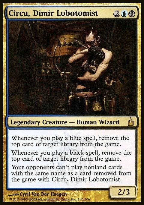 Your opponents can't cast spells with the same name as a card exiled with Circu, Dimir Lobotomist.
