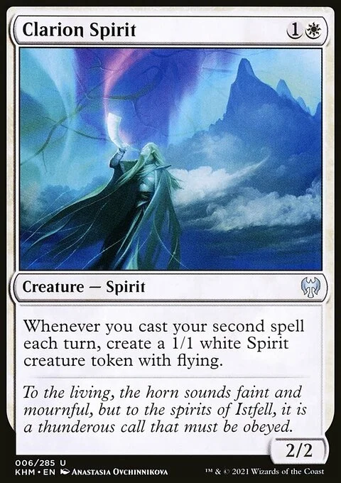 Whenever you cast your second spell each turn, create a 1/1 white Spirit creature token with flying.