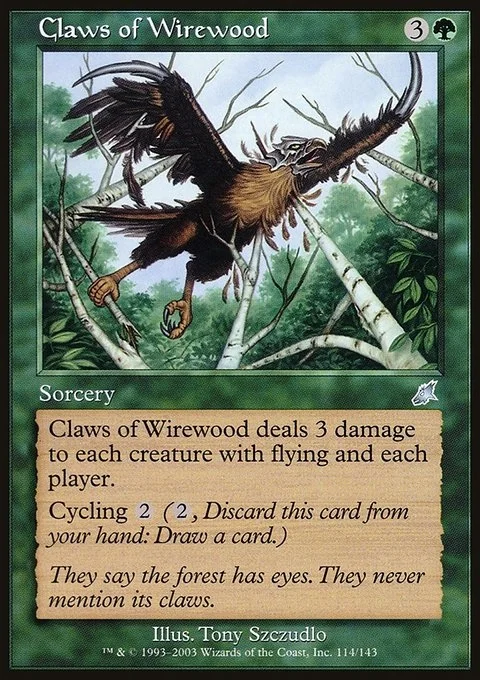 Claws of Wirewood deals 3 damage to each creature with flying and each player.