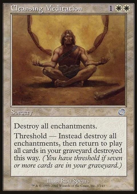 Destroy all enchantments. Threshold — If seven or more cards are in your graveyard, instead destroy all enchantments, then return all cards in your graveyard destroyed this way to the battlefield.