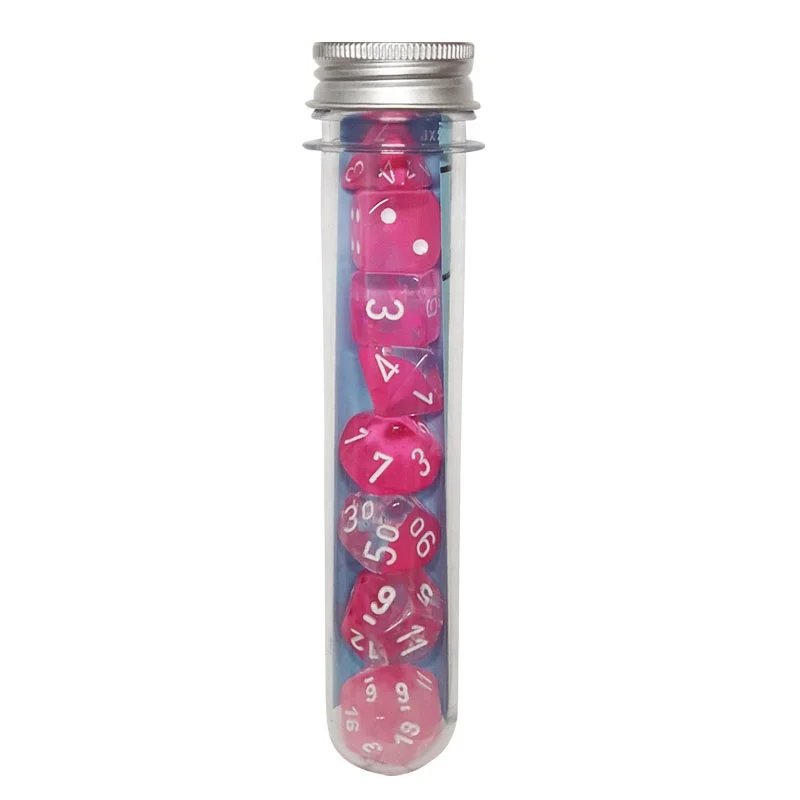 Clear-Pink with White Gemini Polyhedral 7-Die Set Chessex CHX30042