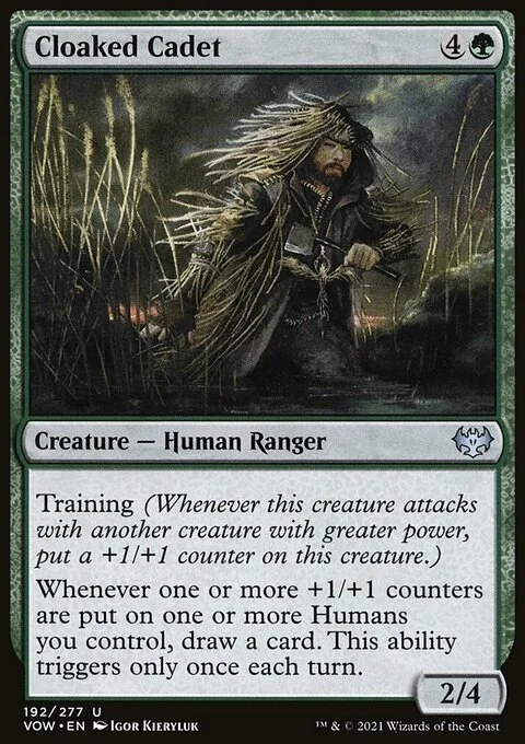 Whenever one or more +1/+1 counters are put on one or more Humans you control, draw a card. This ability triggers only once each turn.