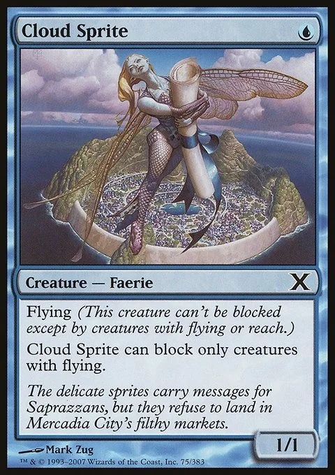 Flying (This creature can't be blocked except by creatures with flying or reach.) Cloud Sprite can block only creatures with flying.