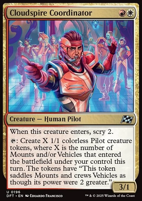 {T}: Create X 1/1 colorless Pilot creature tokens, where X is the number of Mounts and/or Vehicles that entered the battlefield under your control this turn. The tokens have "This token saddles Mounts and crews Vehicles as though its power were 2 greater."