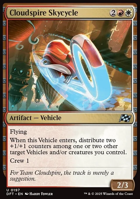 Flying When this Vehicle enters, distribute two +1/+1 counters among one or two other target Vehicles and/or creatures you control. Crew 1