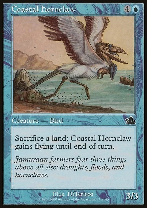 Sacrifice a land: Coastal Hornclaw gains flying until end of turn.