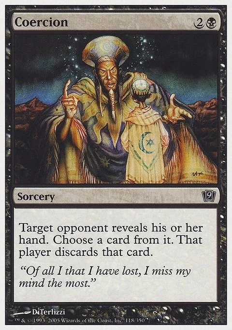 Target opponent reveals their hand. You choose a card from it. That player discards that card.
