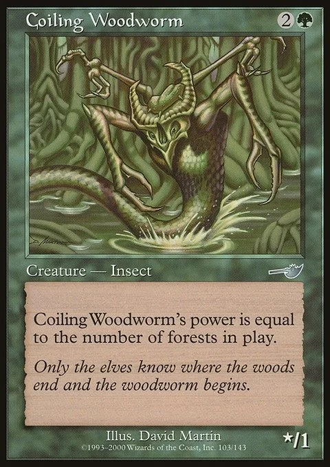 Coiling Woodworm's power is equal to the number of Forests on the battlefield.