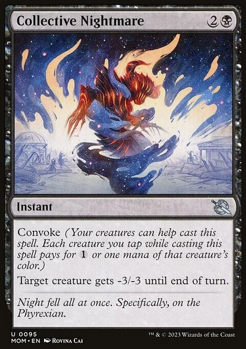Convoke (Your creatures can help cast this spell. Each creature you tap while casting this spell pays for {1} or one mana of that creature's color.) Target creature gets -3/-3 until end of turn.