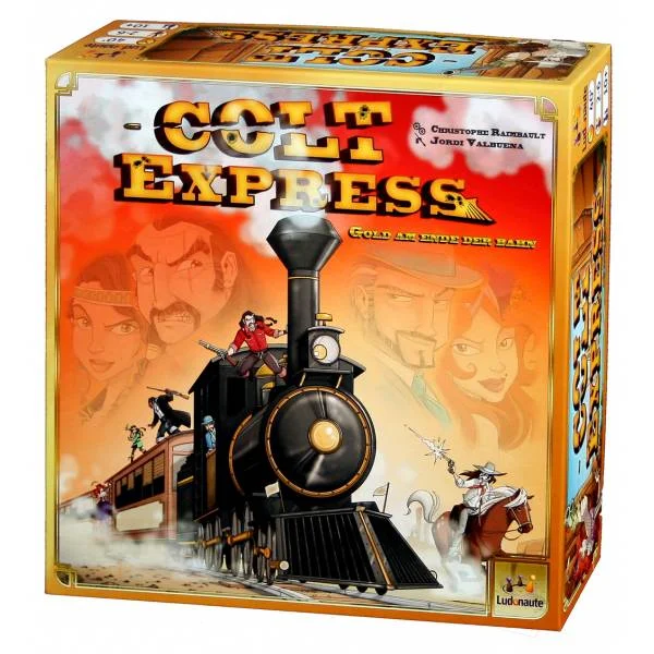 In Colt Express, you play a bandit robbing a train at the same time as other bandits, and your goal is to become the richest outlaw of the Old West. The game consists of five rounds, and each round has two phases: