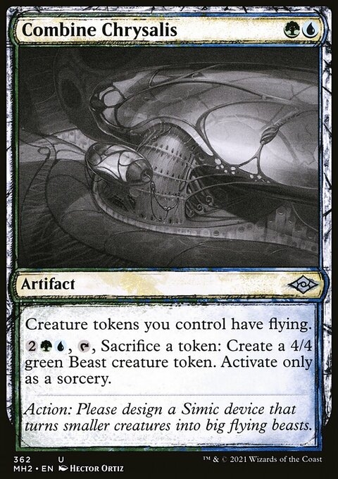 Creature tokens you control have flying. {2}{G}{U}, {T}, Sacrifice a token: Create a 4/4 green Beast creature token. Activate only as a sorcery.