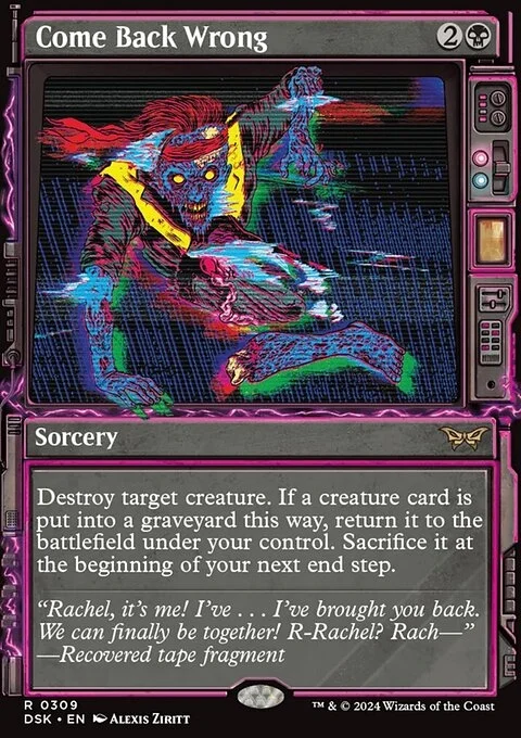 Destroy target creature. If a creature card is put into a graveyard this way, return it to the battlefield under your control. Sacrifice it at the beginning of your next end step.