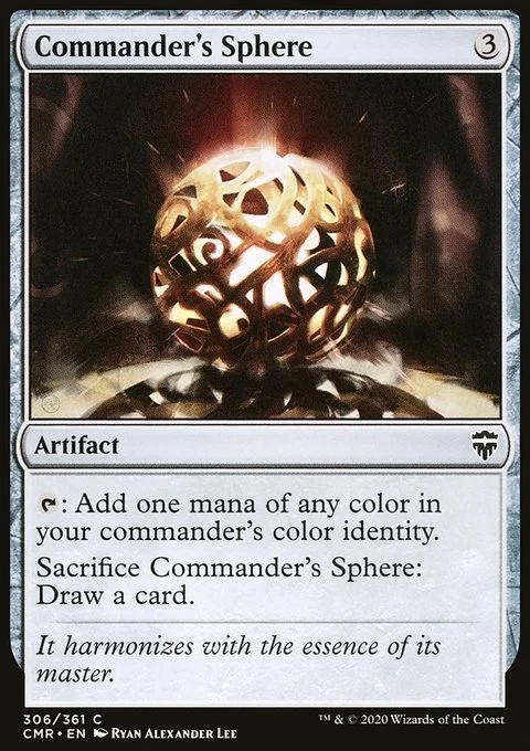 {T}: Add one mana of any color in your commander's color identity. Sacrifice this artifact: Draw a card.