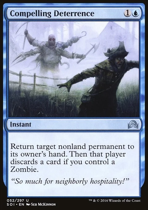 Return target nonland permanent to its owner's hand. Then that player discards a card if you control a Zombie.