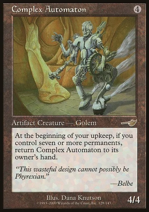 At the beginning of your upkeep, if you control seven or more permanents, return Complex Automaton to its owner's hand.
