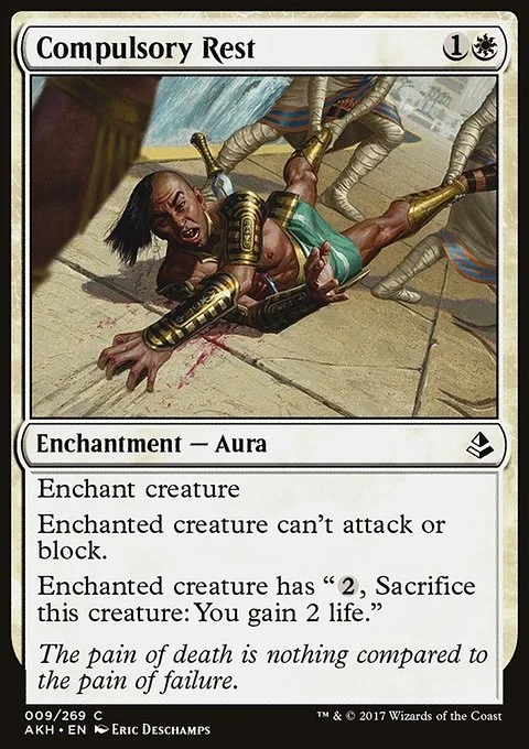 Enchant creature Enchanted creature can't attack or block. Enchanted creature has "{2}, Sacrifice this creature: You gain 2 life."