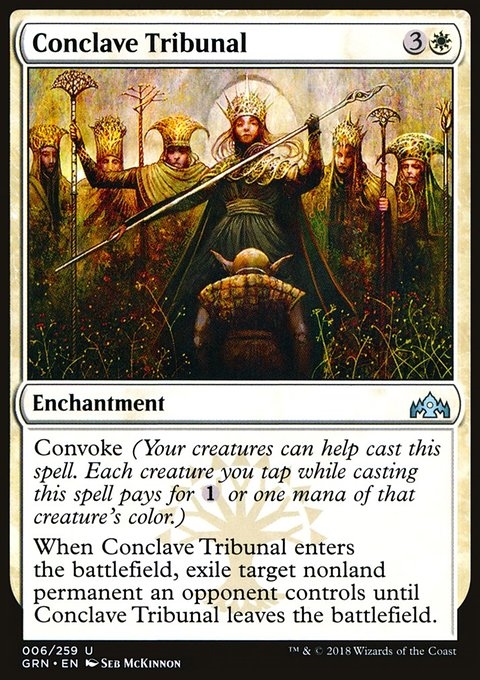 When Conclave Tribunal enters the battlefield, exile target nonland permanent an opponent controls until Conclave Tribunal leaves the battlefield.