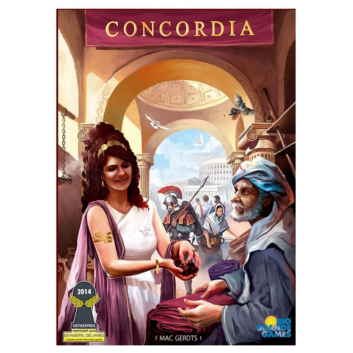 CONCORDIA is a peaceful strategy game of economic development in Roman times for 2 to 5 players age 13 and up. Instead of luck of dice or cards, players must rely on their strategic abilities. Be sure to watch your rivals to determine which goals they are pursuing and where you can outpace them!