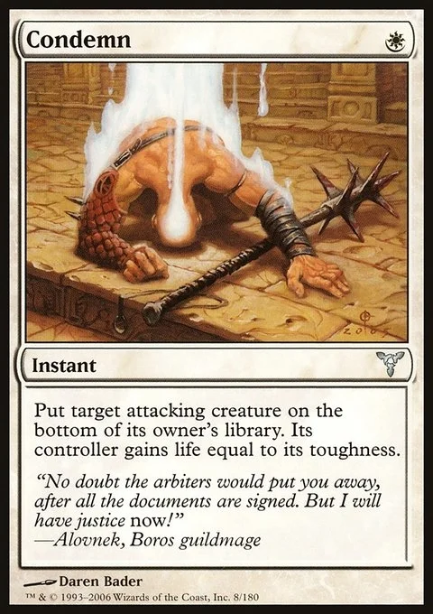 Put target attacking creature on the bottom of its owner's library. Its controller gains life equal to its toughness.