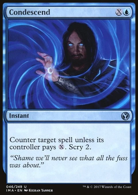 Counter target spell unless its controller pays {X}. Scry 2. (Look at the top two cards of your library, then put any number of them on the bottom of your library and the rest on top in any order.)