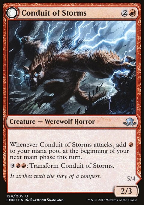 Whenever Conduit of Storms attacks, add {R} at the beginning of your next main phase this turn.
