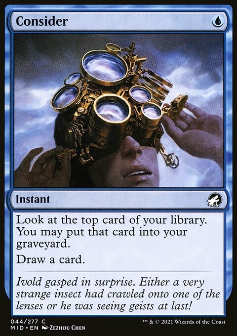 Surveil 1. (Look at the top card of your library. You may put it into your graveyard.) Draw a card.