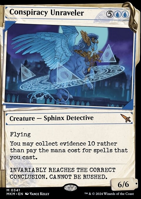 Flying You may collect evidence 10 rather than pay the mana cost for spells that you cast. (To collect evidence 10, exile cards with total mana value 10 or greater from your graveyard.)