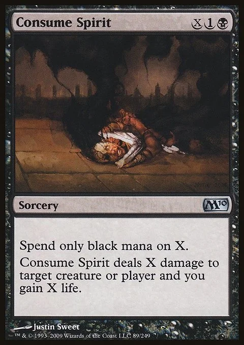 Spend only black mana on X. Consume Spirit deals X damage to any target and you gain X life.