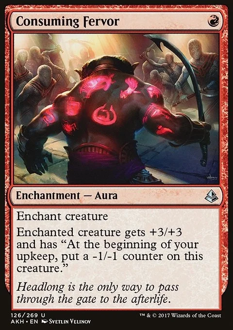 Enchant creature Enchanted creature gets +3/+3 and has "At the beginning of your upkeep, put a -1/-1 counter on this creature."