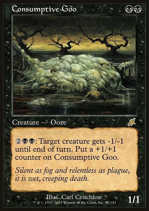 2BB: Target creature gets -1/-1 until end of turn. Put a +1/+1 counter on Consumptive Goo.