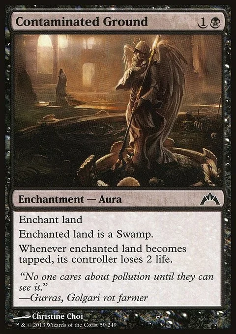 Enchant land Enchanted land is a Swamp. Whenever enchanted land becomes tapped, its controller loses 2 life.
