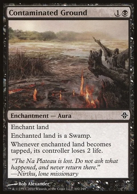 Enchant land Enchanted land is a Swamp. Whenever enchanted land becomes tapped, its controller loses 2 life.