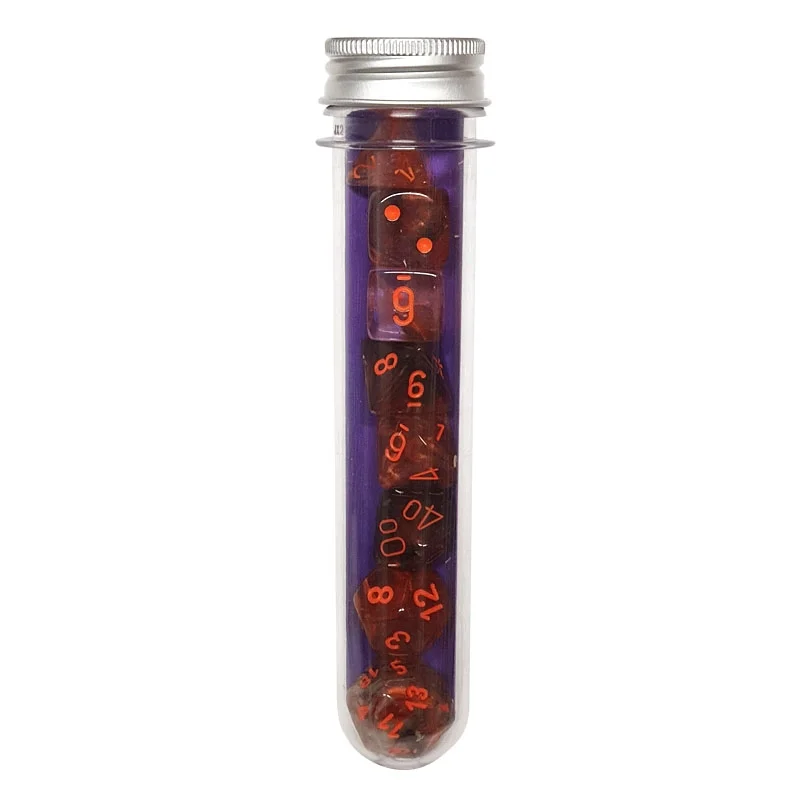 Copper Matrix with Orange Nebula Polyhedral 7-Die Set Chessex CHX30040
